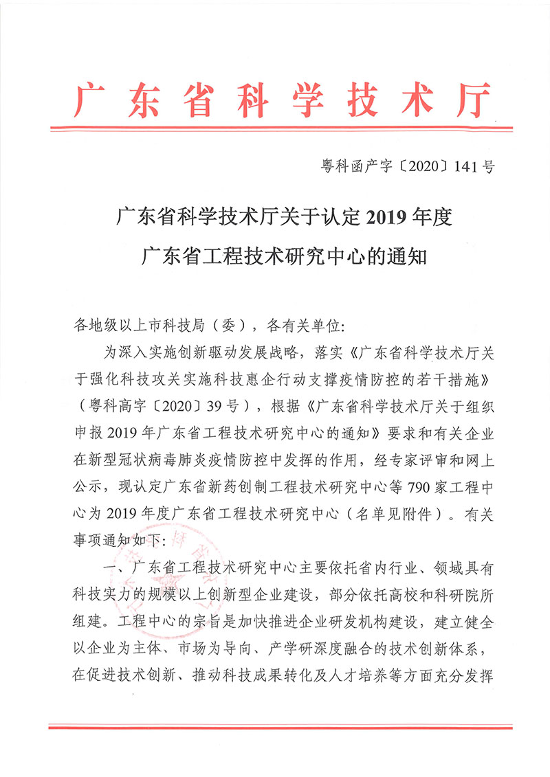 企鹅直播机械制造有限公司于2019年认定为广东省工程技术研究中心